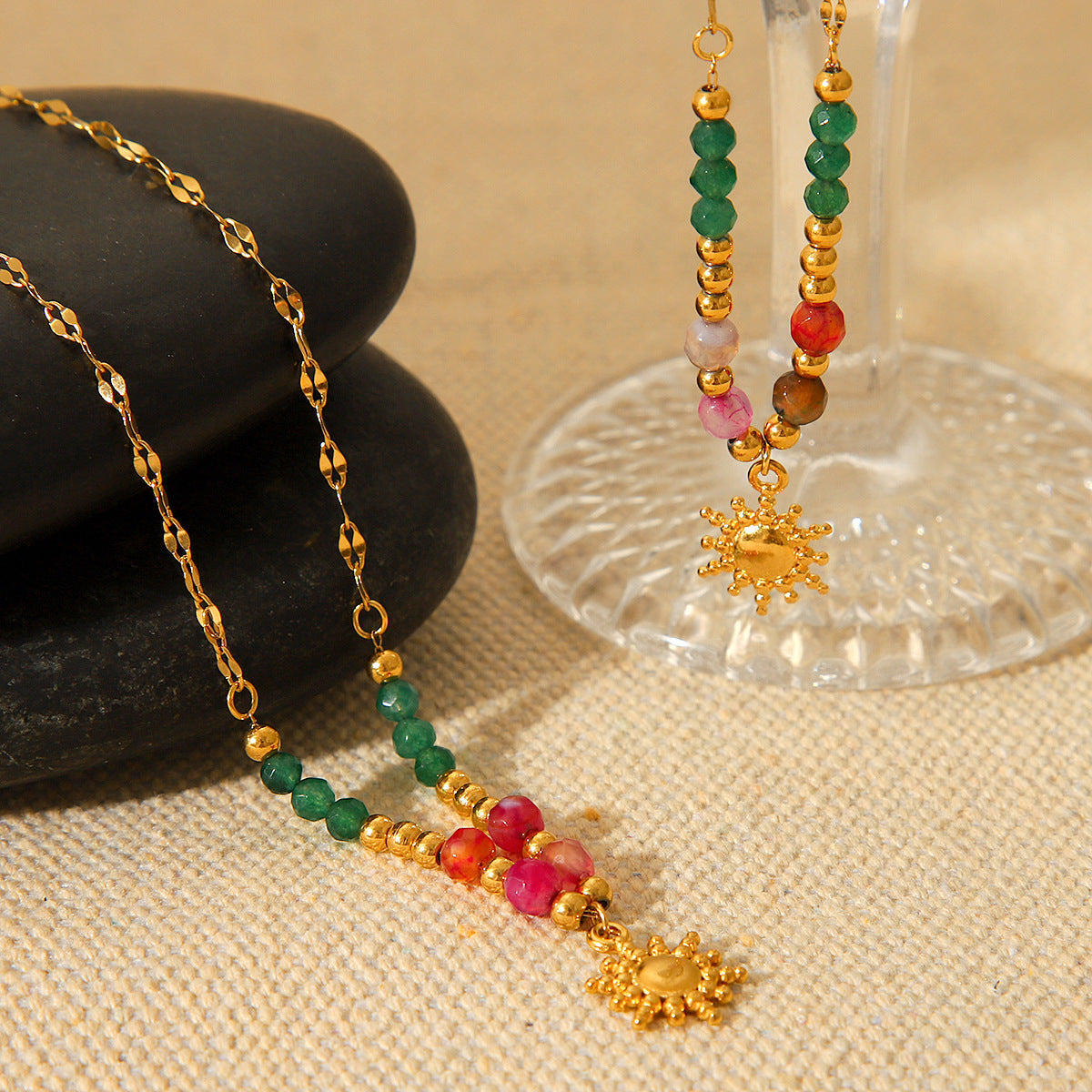 18K Gold Plated Stainless Steel Sun Pendant Necklace For Women