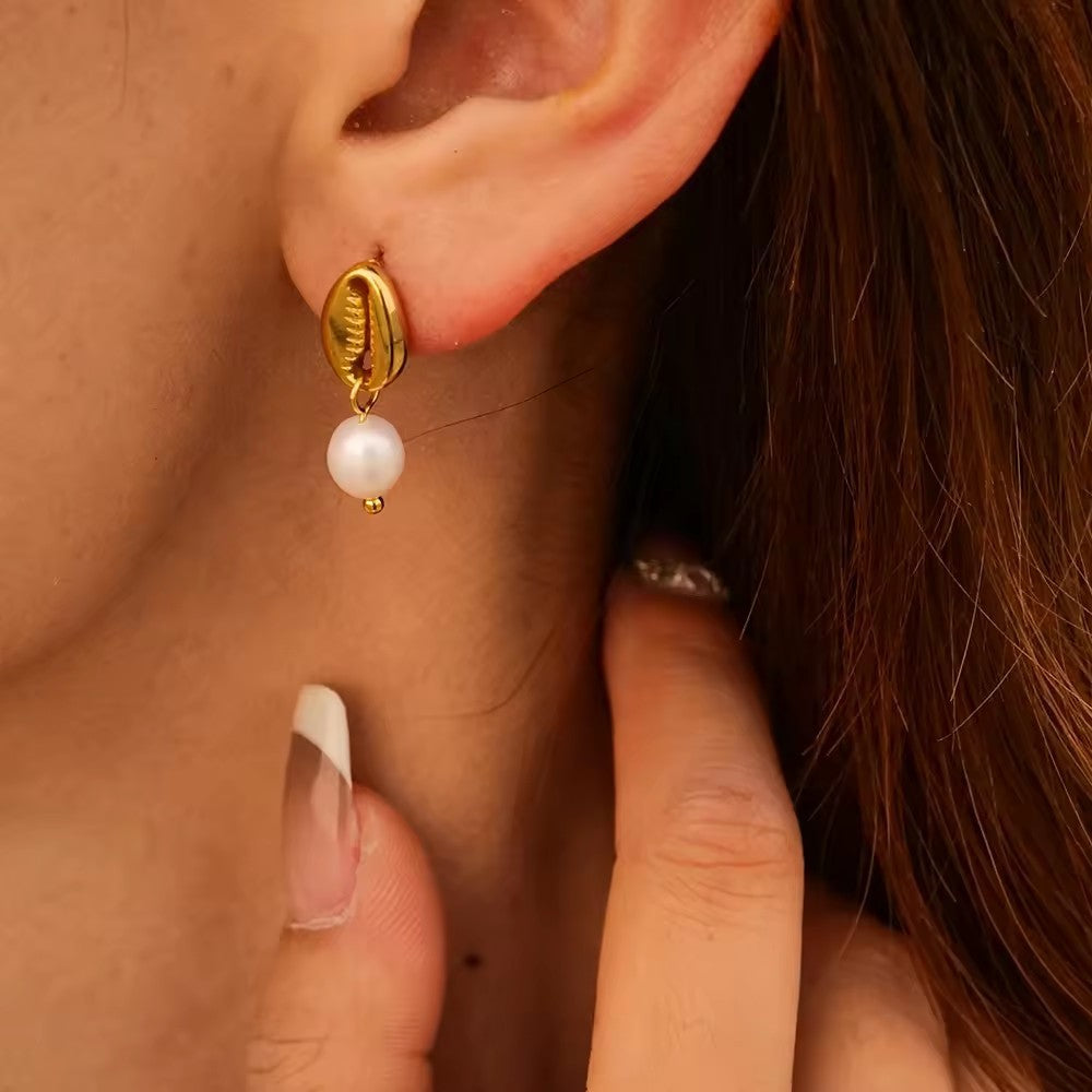 18k Gold Stainless Steel Freshwater Pearl Ginkgo Pendant Earrings