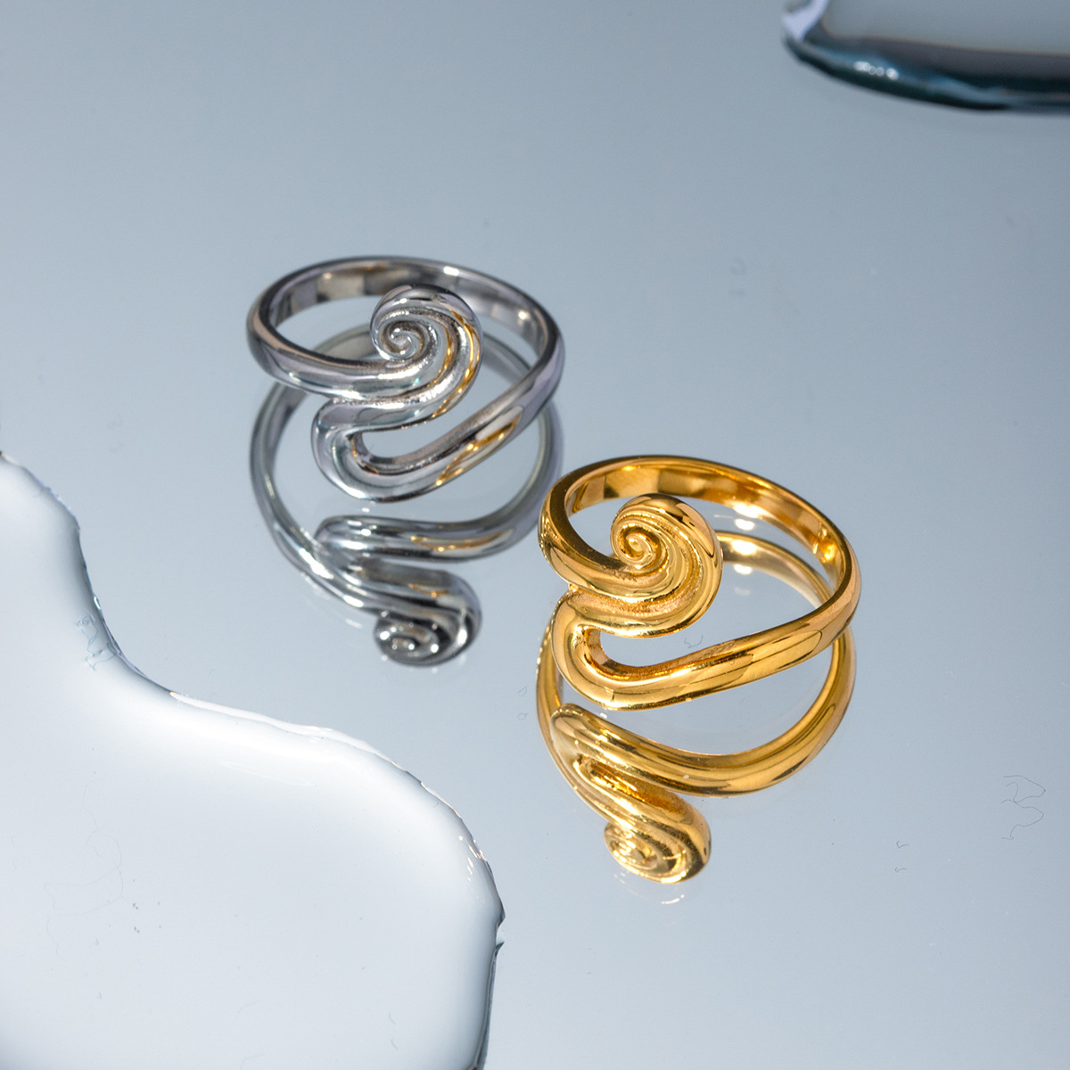 18K Gold Stainless Steel Inlaid Colorful Diamond Shaped Ring