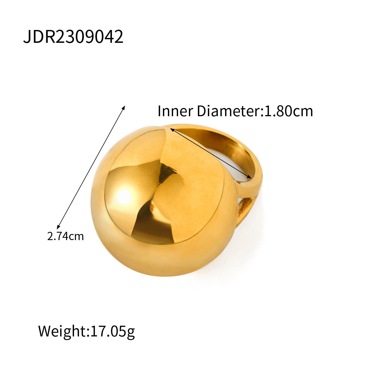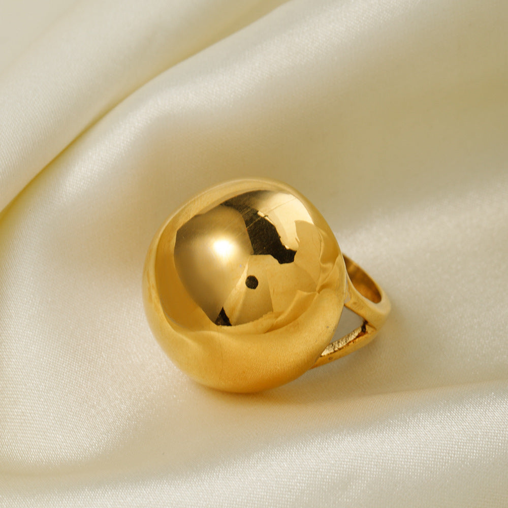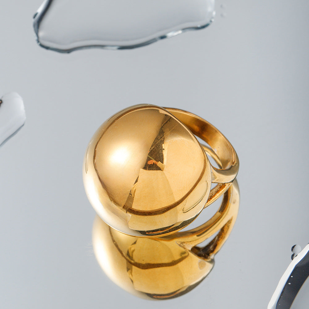 Cold Style Titanium Steel 18K Gold Stainless Steel Chubby Spherical Ring
