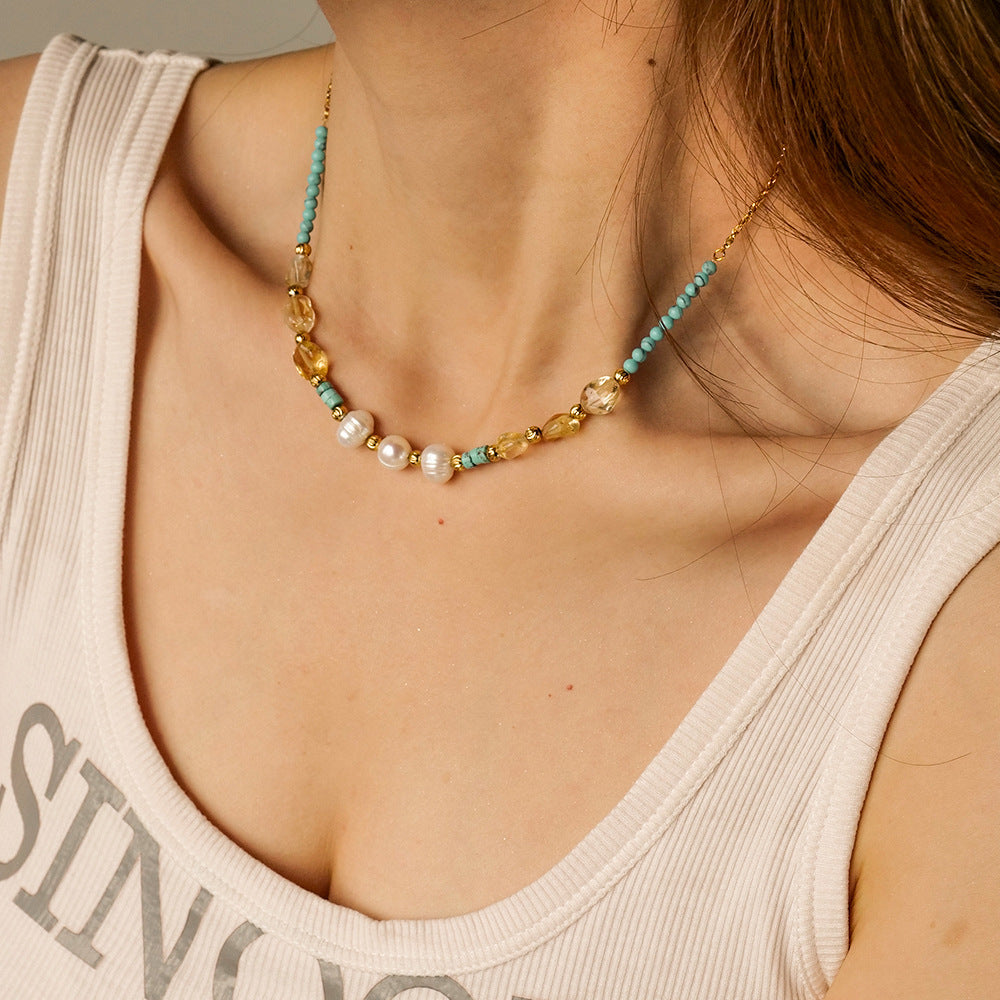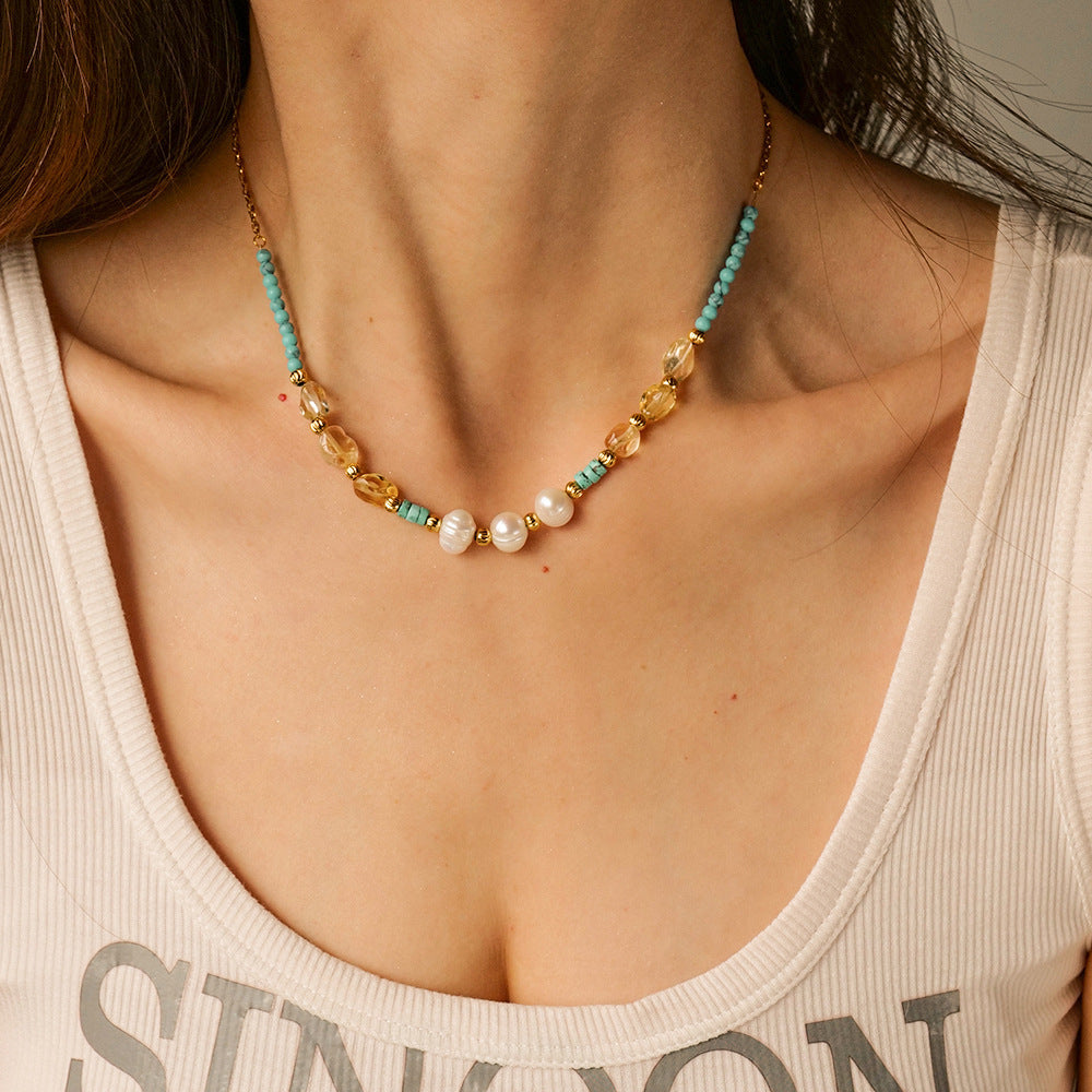 Color 18K Gold Stainless Steel Freshwater Stringed Pearls Necklace