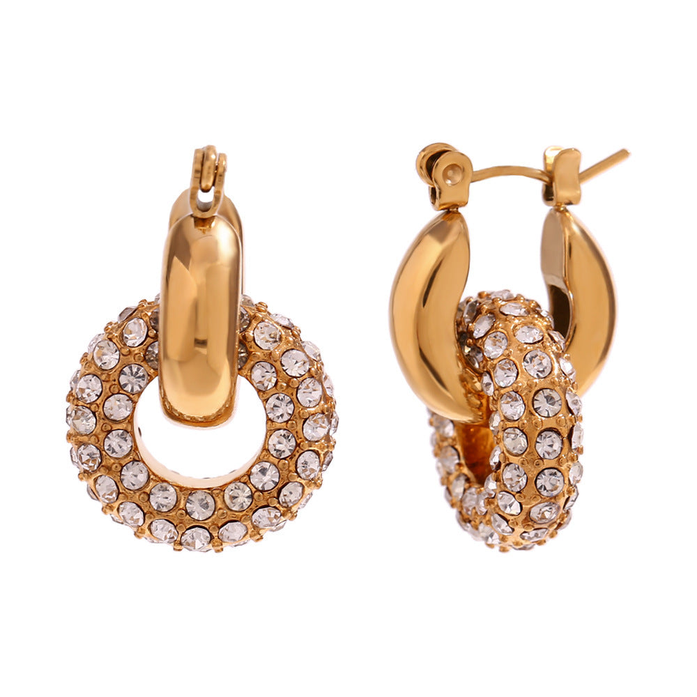 Color: Micro inlaid donut ring small earrings-Gold White Diamond