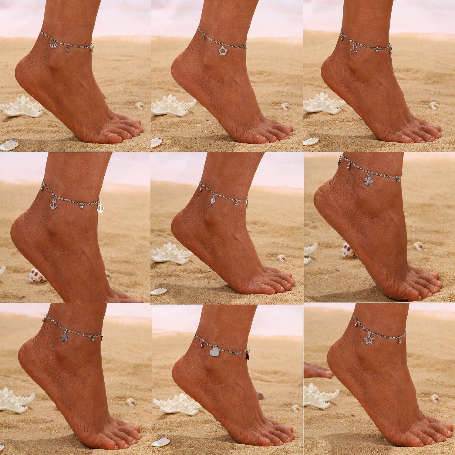Love Heart Flowers Five-pointed Star Stainless Steel Pendant Anklet