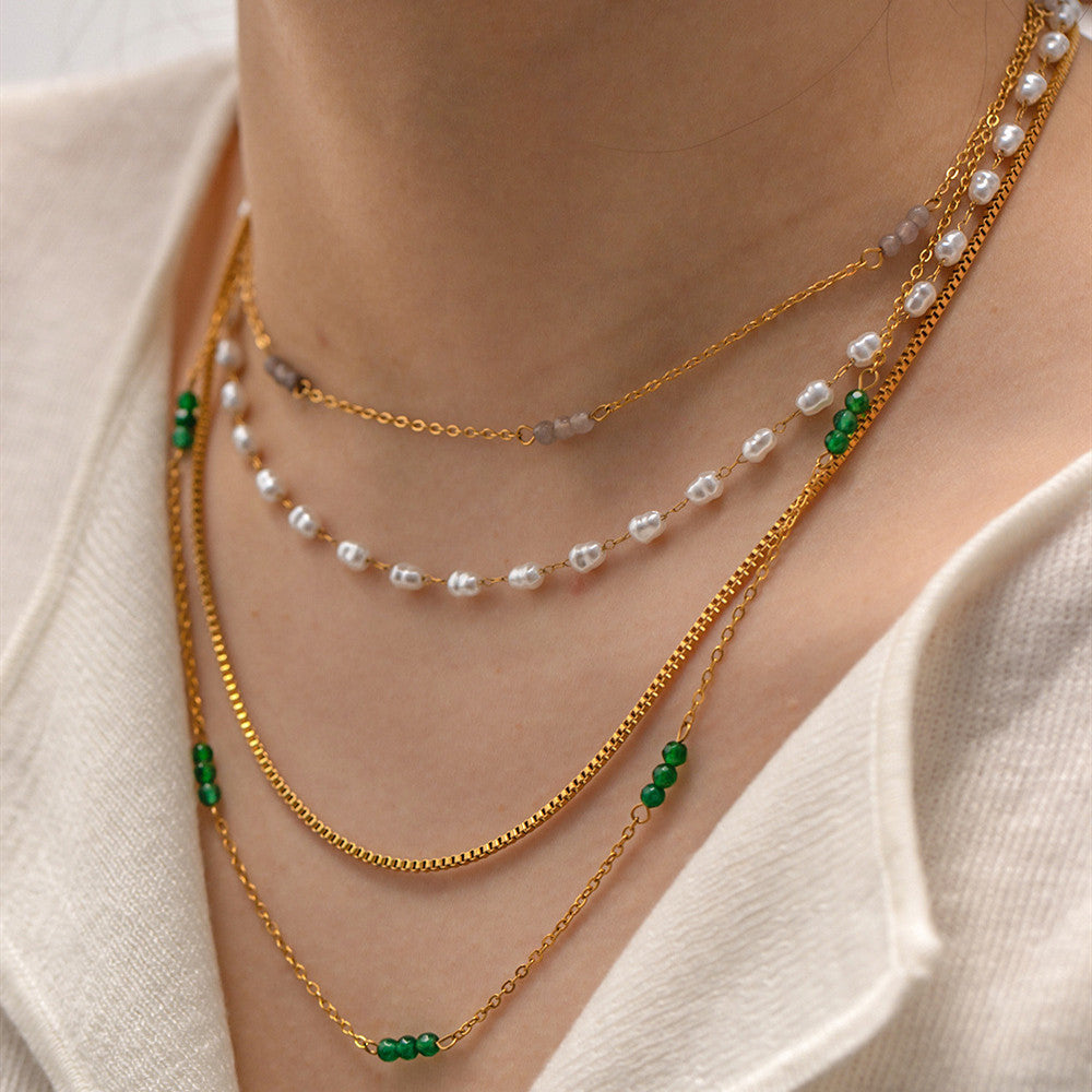 Necklace 18K Gold-plated Stainless Steel Pearl