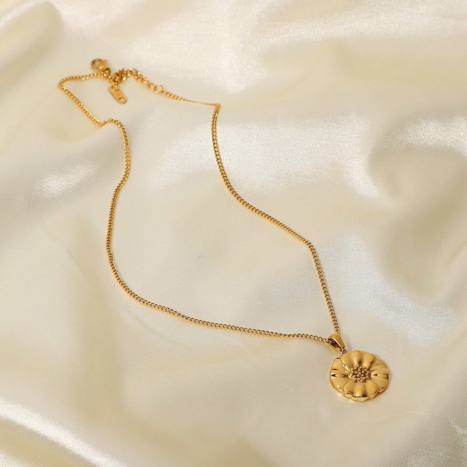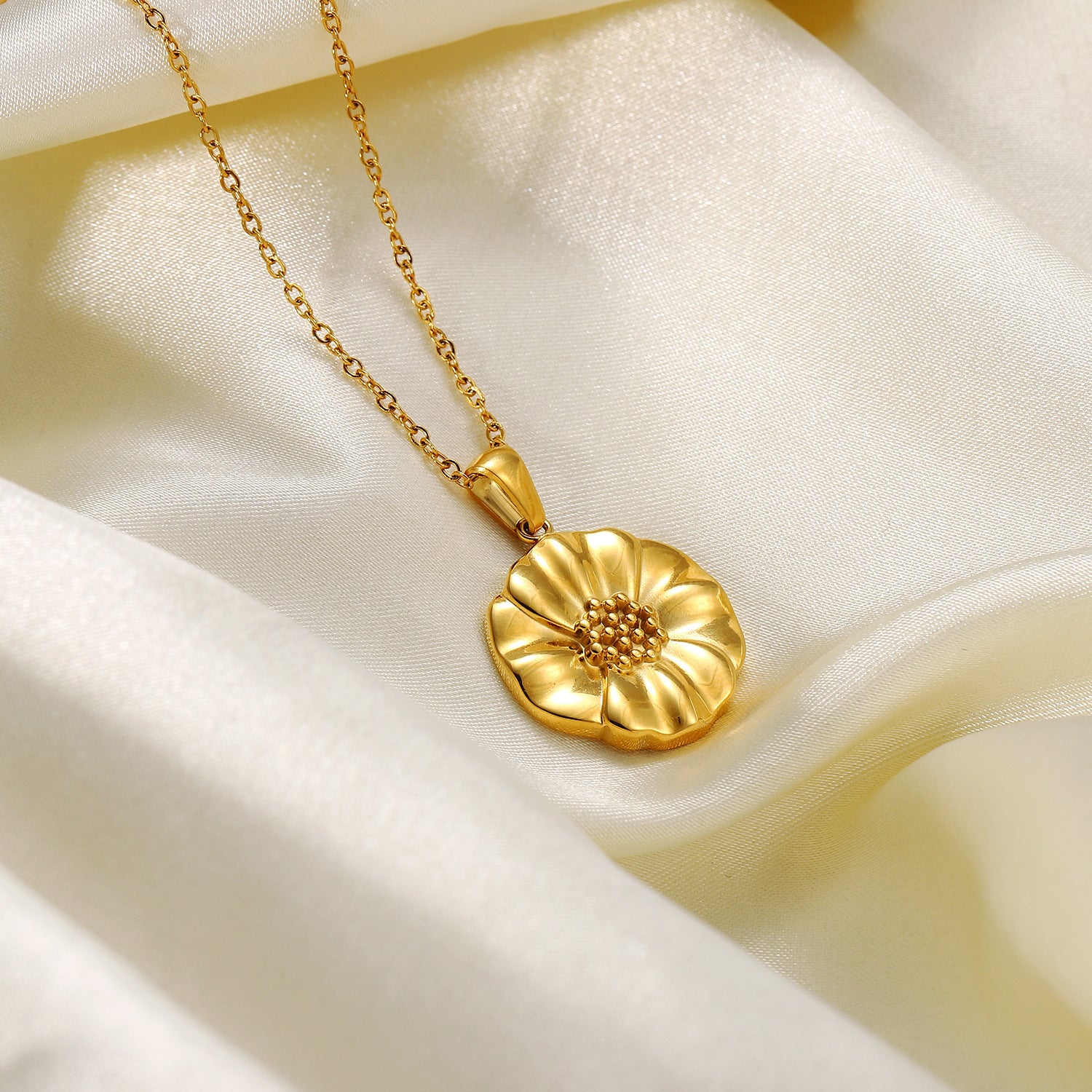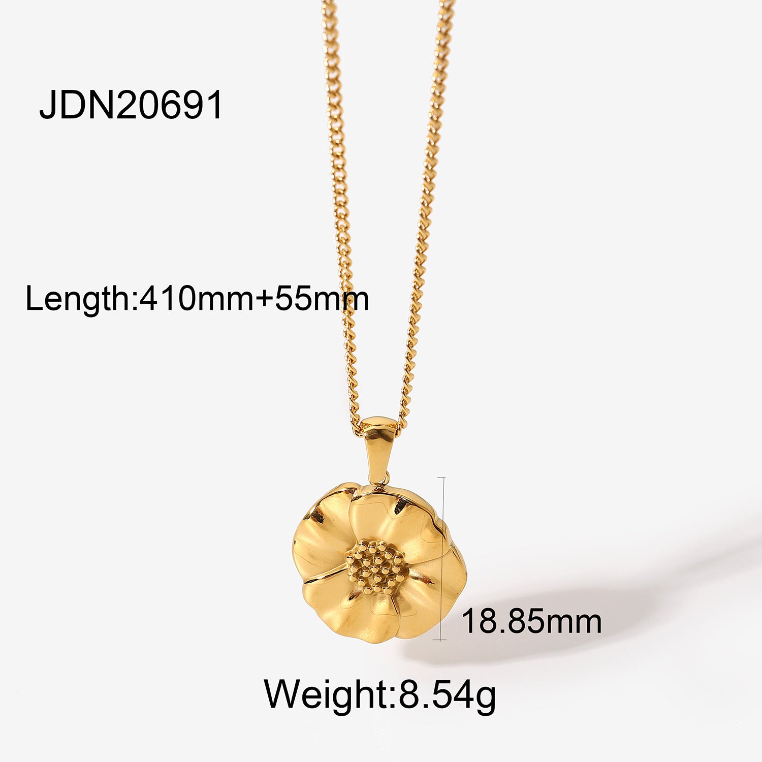 Necklace Stainless Steel 18K Gold Three-dimensional Poppy Flower Pendant Necklace