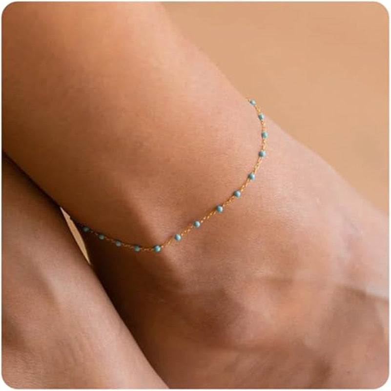Oil Dripping Bead Herringbone Chain Anklet Rice Bead Chain Anklet