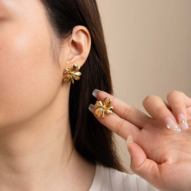 Retro Easy Matching Stainless Steel 18K Gold Plating Earrings