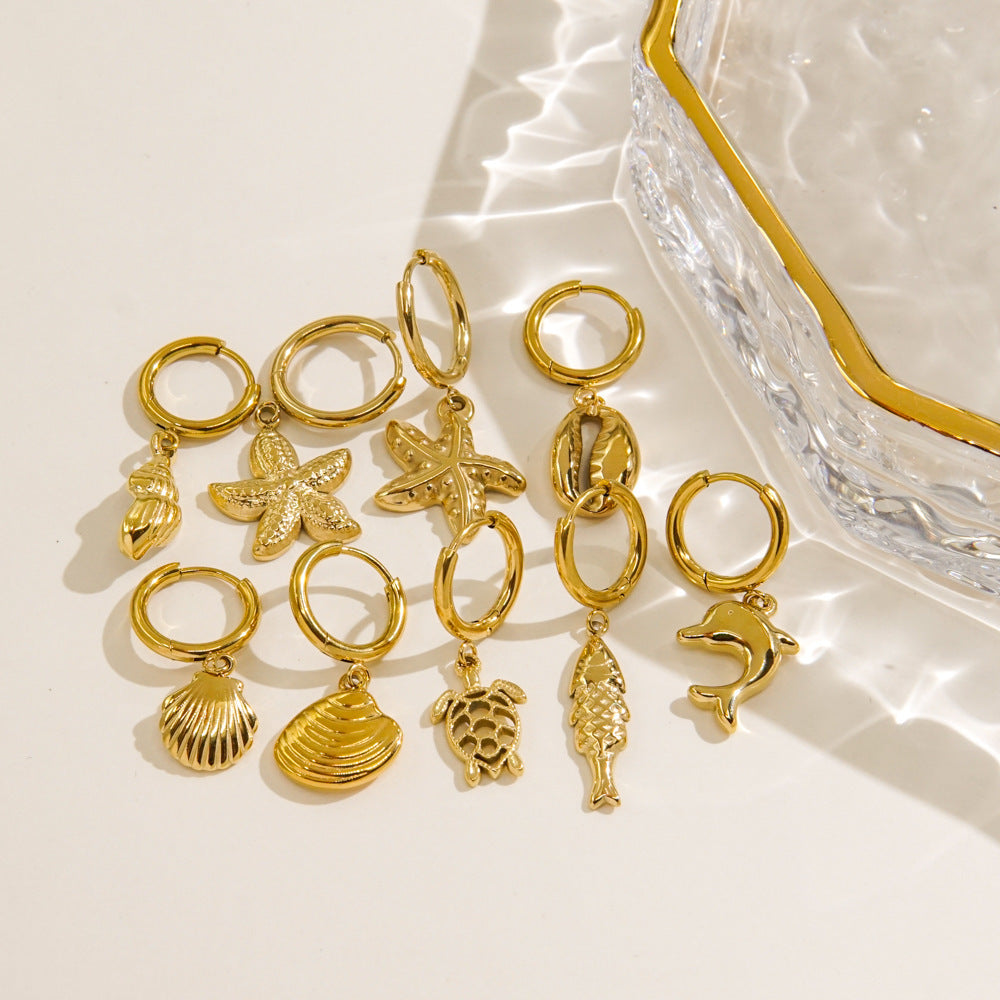 Single Summer Marine Elements Series Stainless Steel 14K Gold Pendant Earrings Tropical Beach Wind Starfish