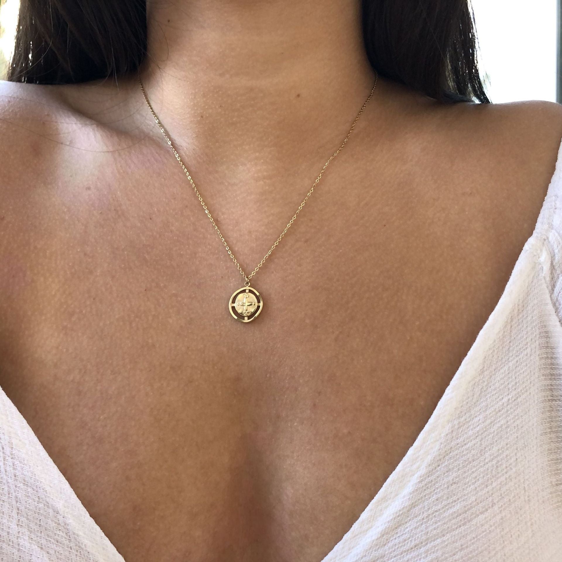 Six-pointed Star Compass Titanium Steel 18K Gold-plated Pendant Eye Stainless Steel Necklace