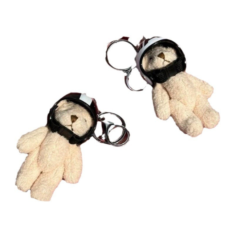 South Korea Ins Cute Motorcycle Helmet Bear Pendant Plush Key Chain