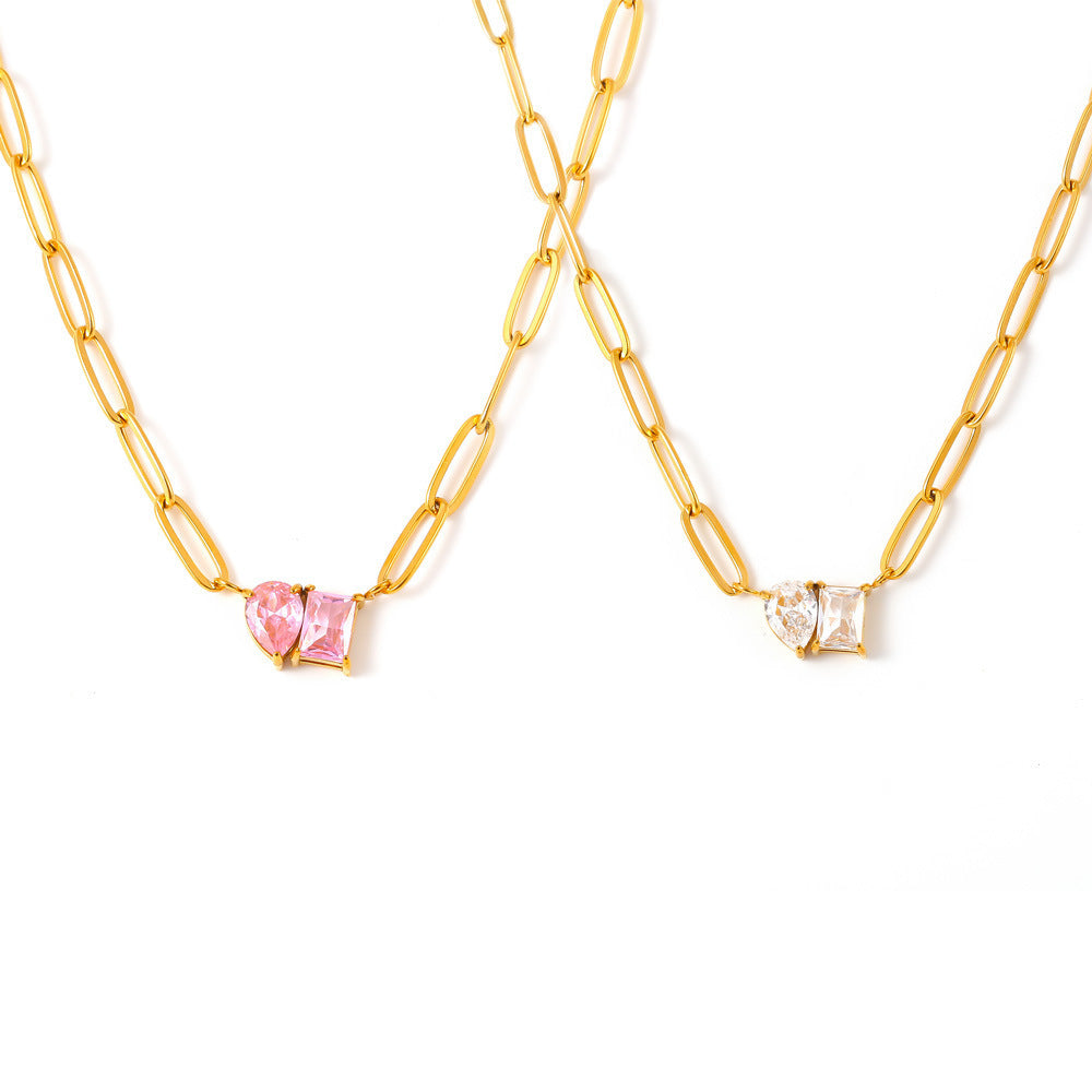 Color: P2004-white zircon necklace, P2004-pink zircon necklace