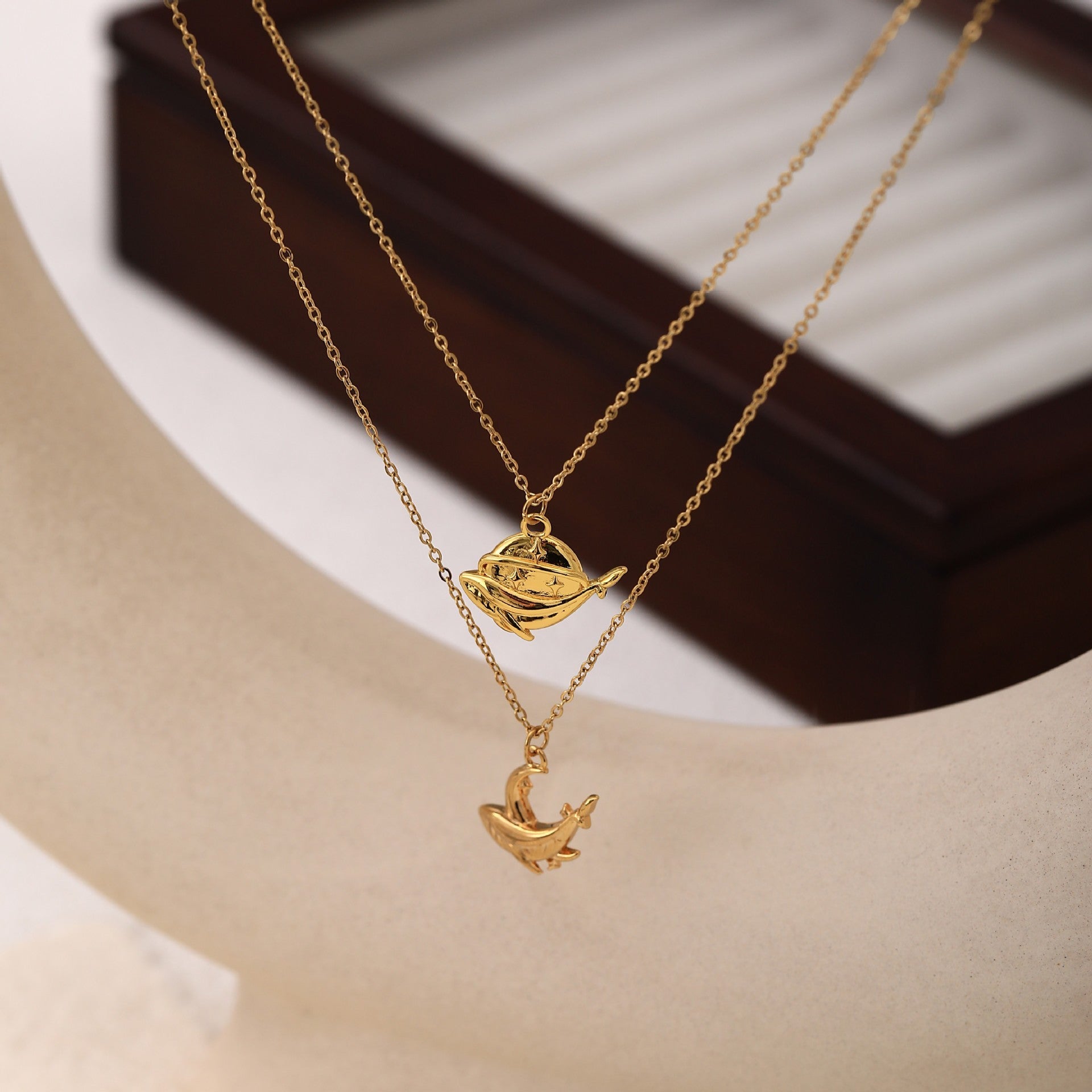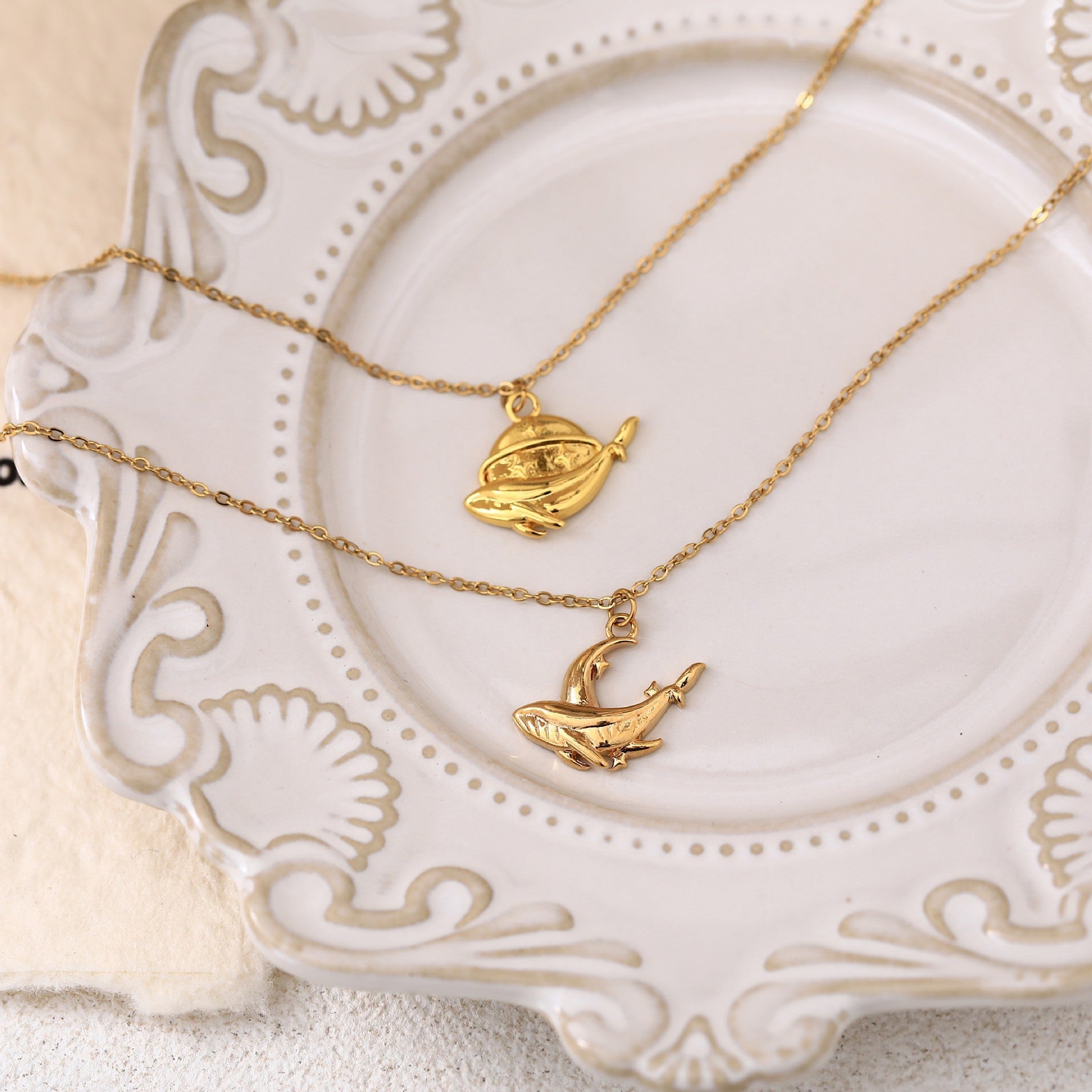 Stainless Steel Fashion Sun Moon Whale Necklace