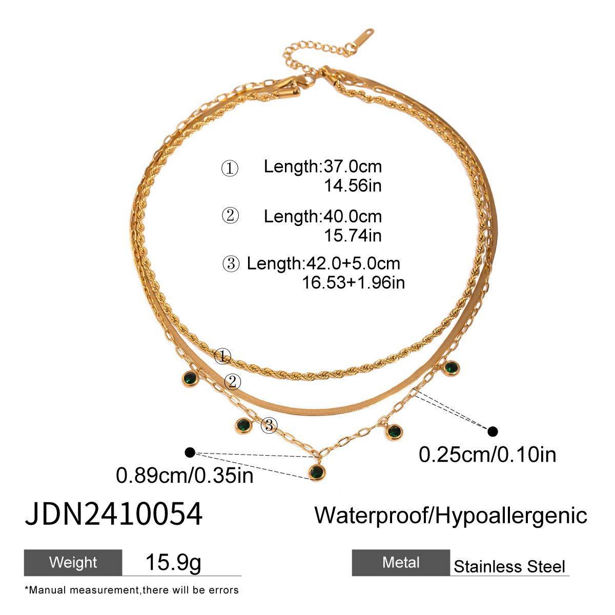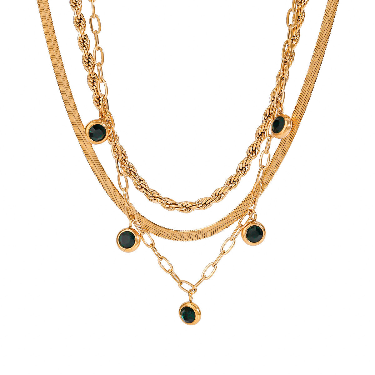 Stainless Steel Green Rhinestone Multi-layer Twin Necklace