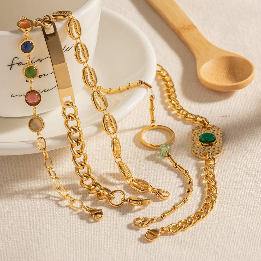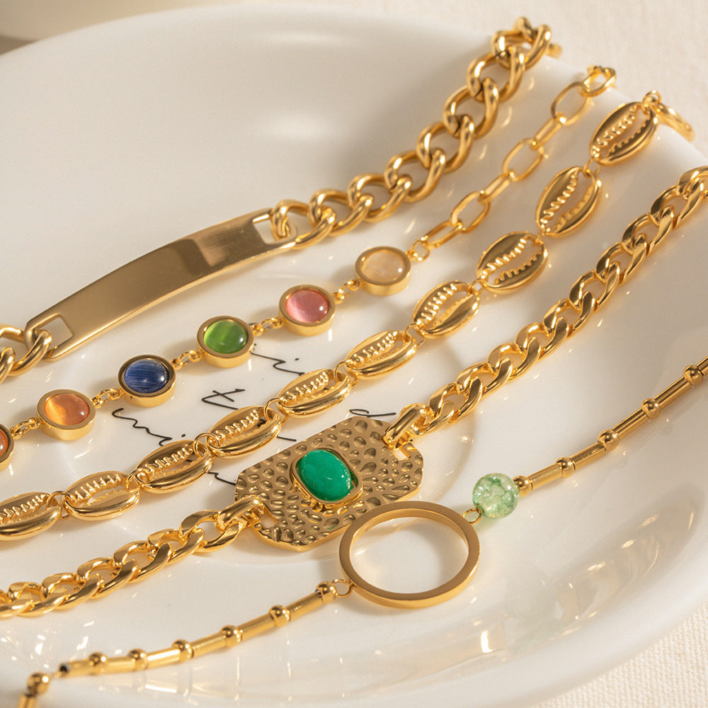 Stainless Steel Malay Jade Texture Square Plate Magic Color Opal Hollow Shell Bracelet