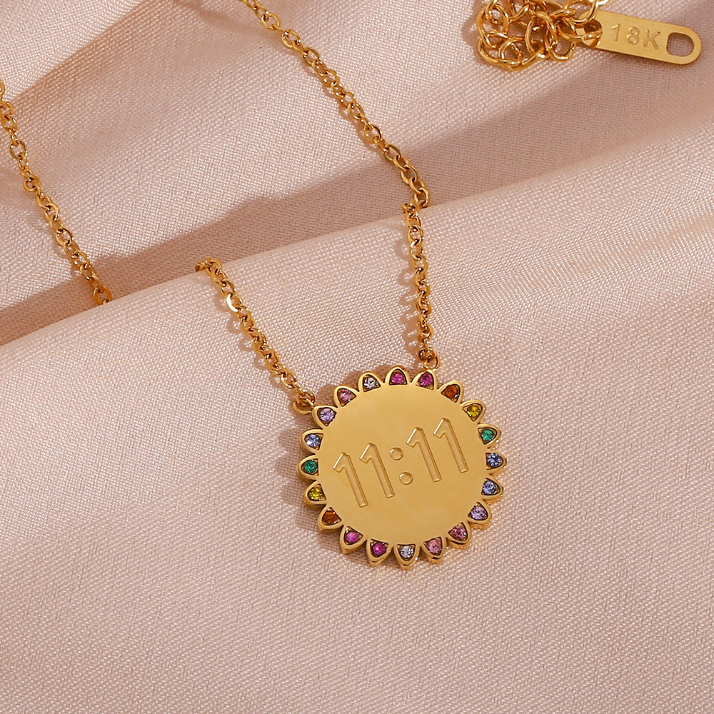 Stainless Steel Plated 18K Gold Micro Inlay Rhinestone SUNFLOWER Pendant Necklace