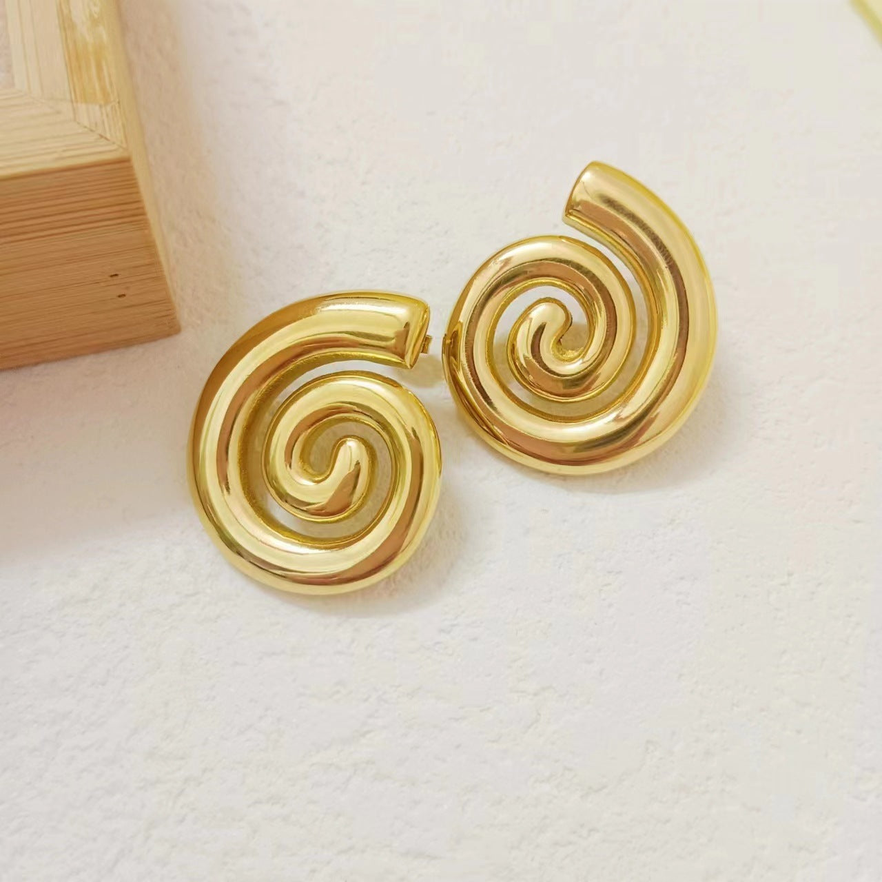 Stainless Steel Rotating Thread Earrings 18K Gold