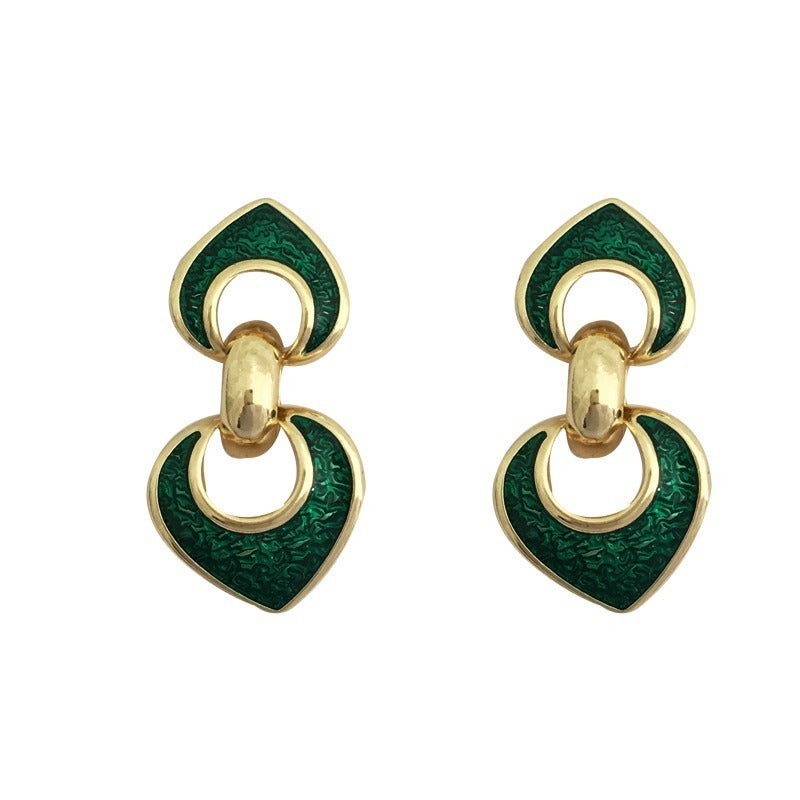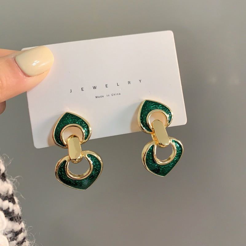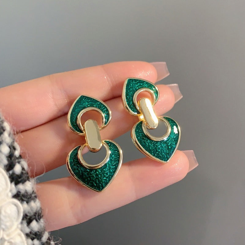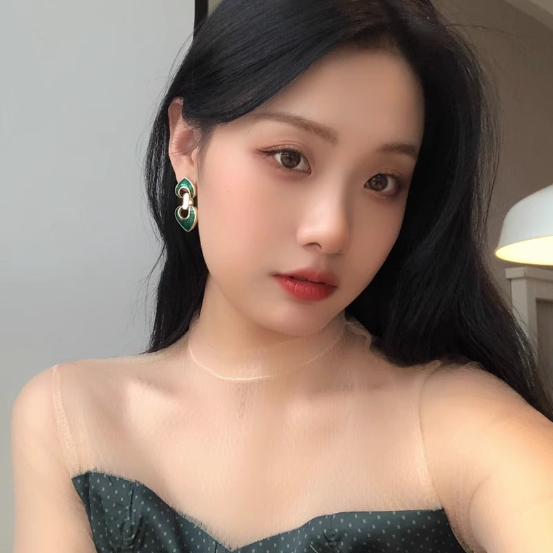 Sterling Silver Needle Retro Hong Kong Style Green Heart Ear Studs