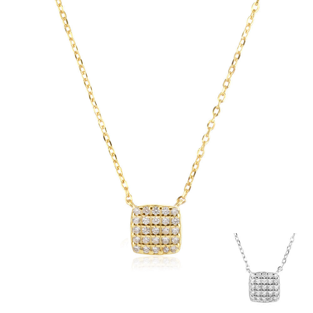 Sterling Silver Square Stone Full-shop Pendant Necklace